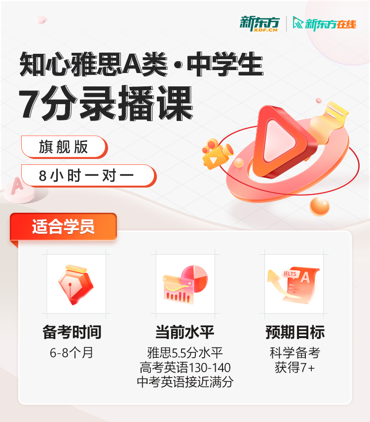 【知心雅思】7分录播课(旗舰版+8小时一对一)(A类,中学生)