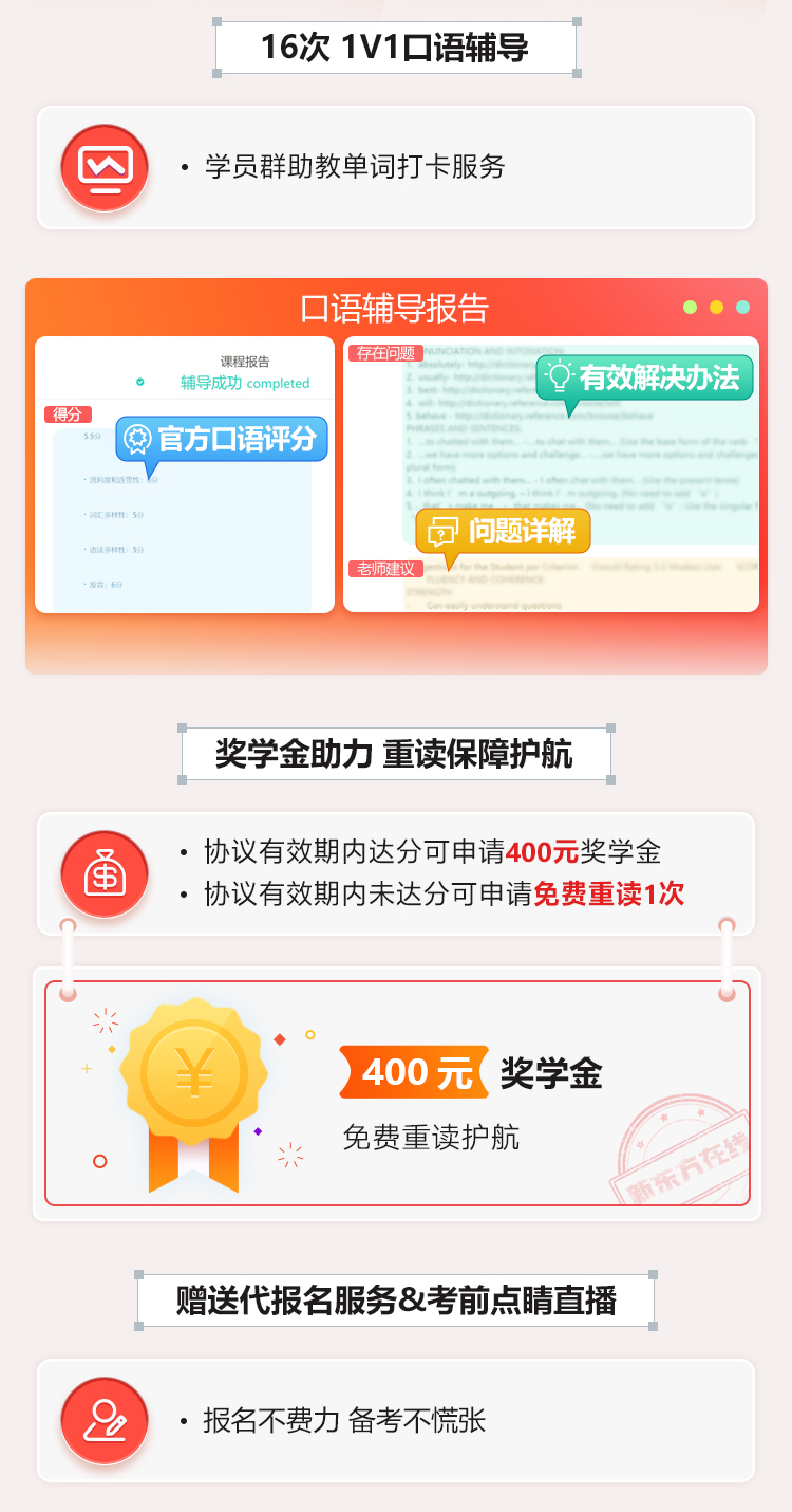 免费重读学完课程参加考试,未达目标分数且满足协议条件,享受免费重读。