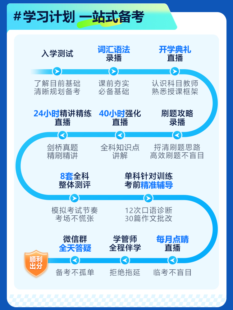 免费重读学完课程参加考试,未达目标分数且满足协议条件,享受免费重读。