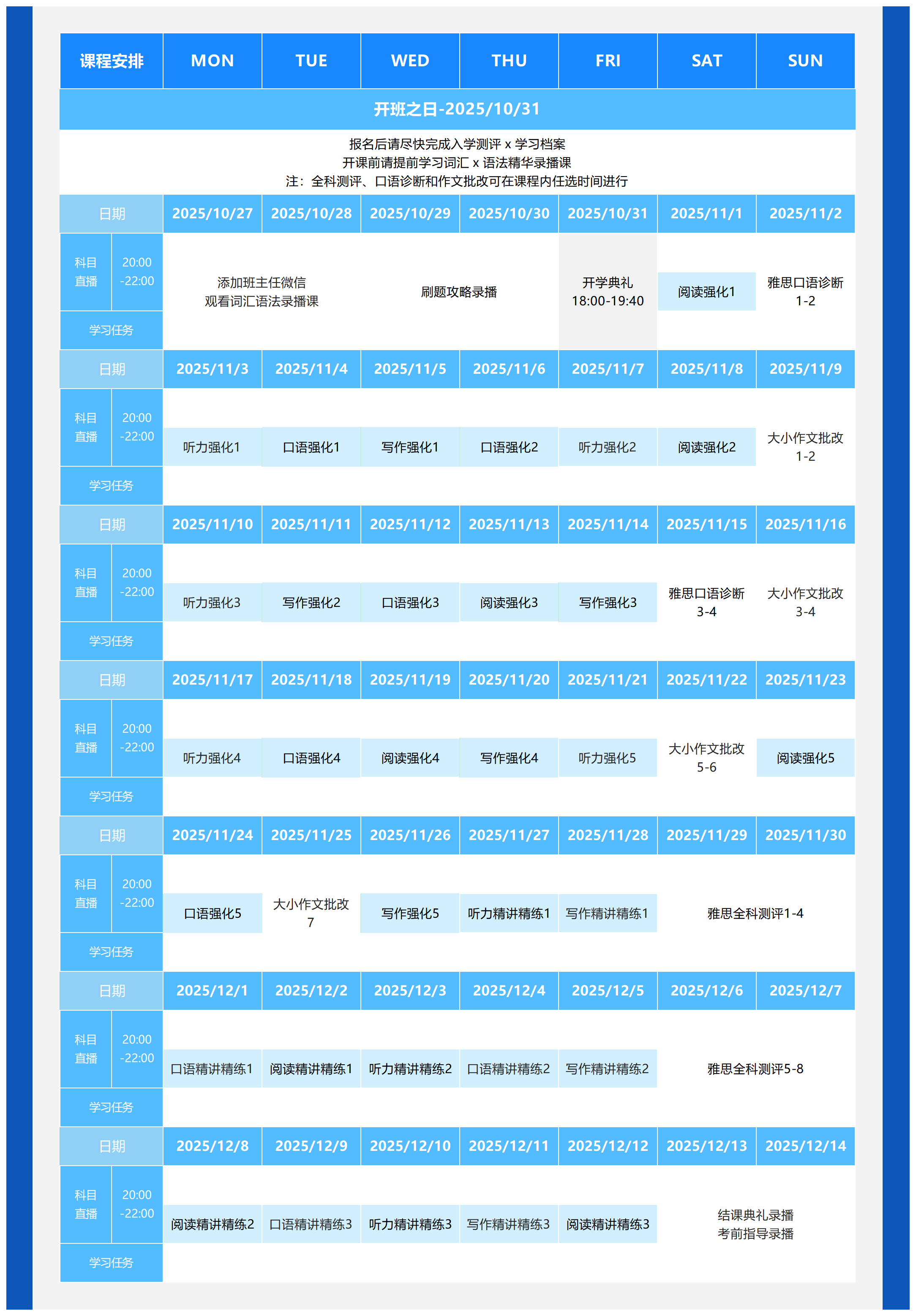 雅思60天直播班(25年10月31日开班,晚班)